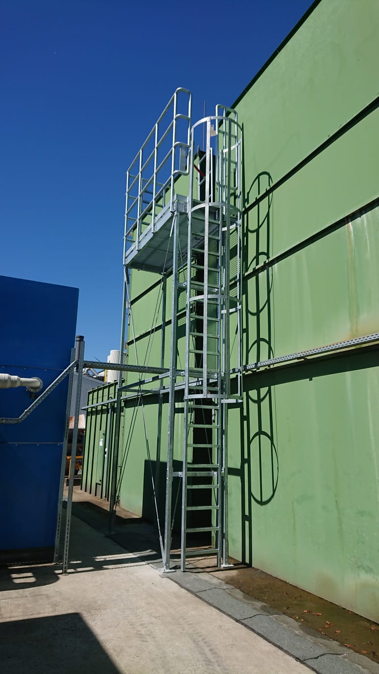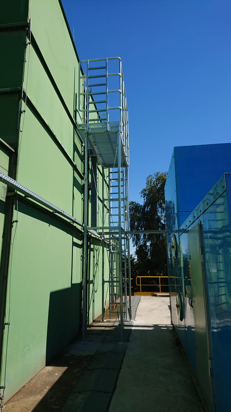 Freistehende Inspektionsbühne an einer Kühlanlage aus GFK