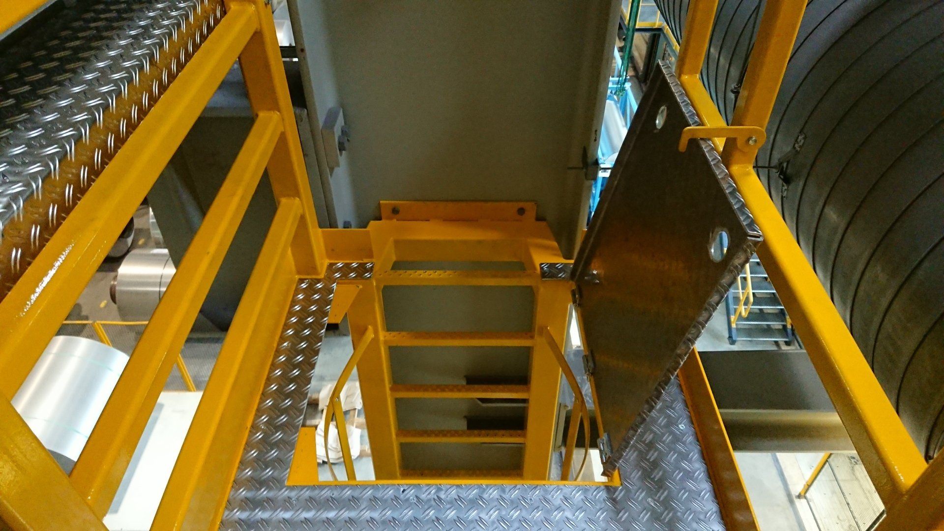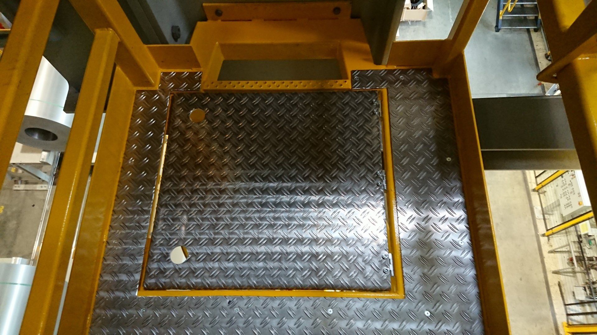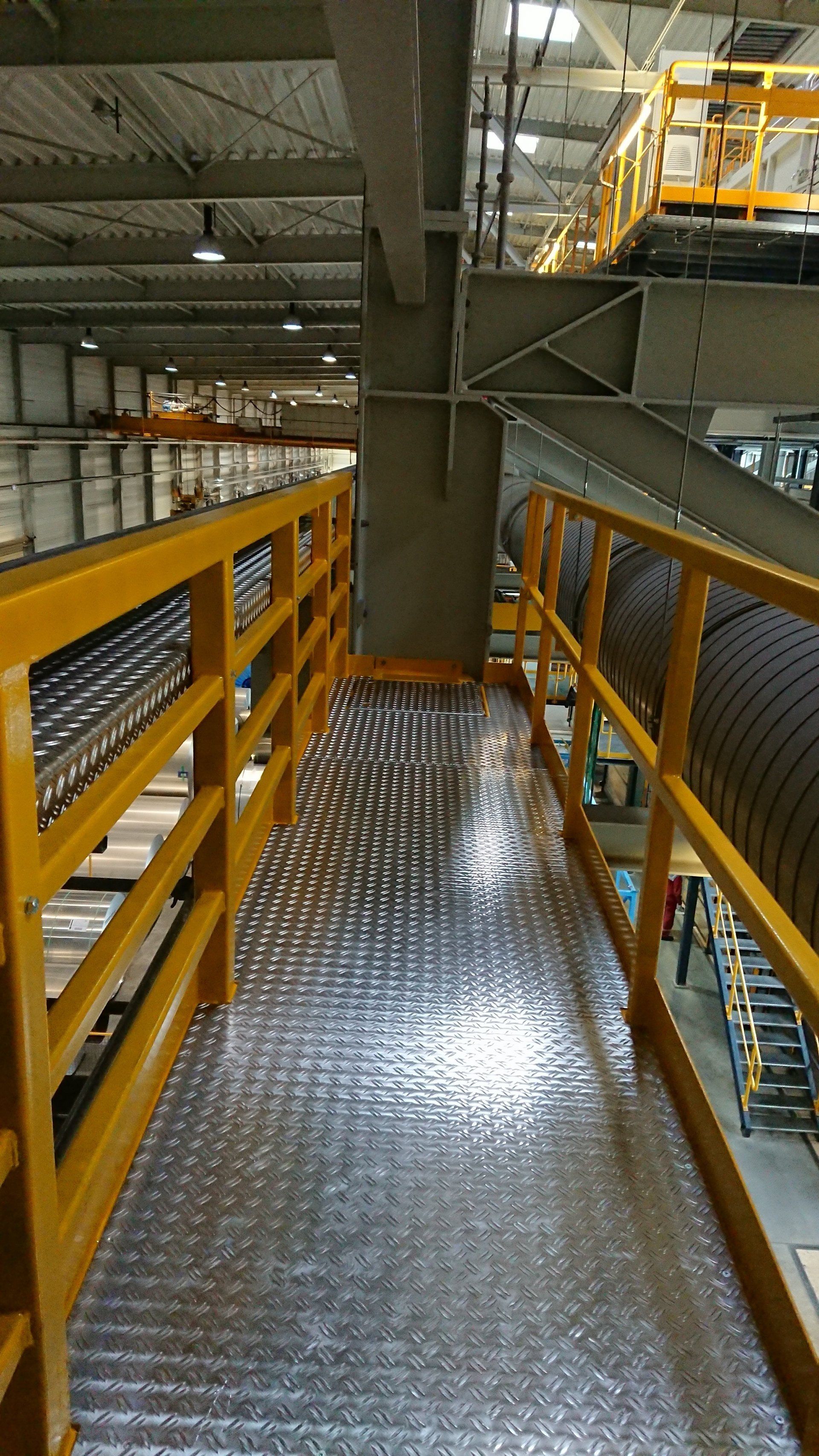 Kranwartungsbühne mit schweren Geländern zum Anschlagen von Sicherungsmitteln