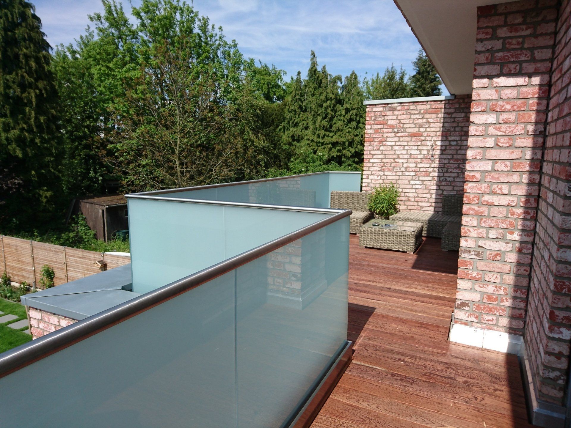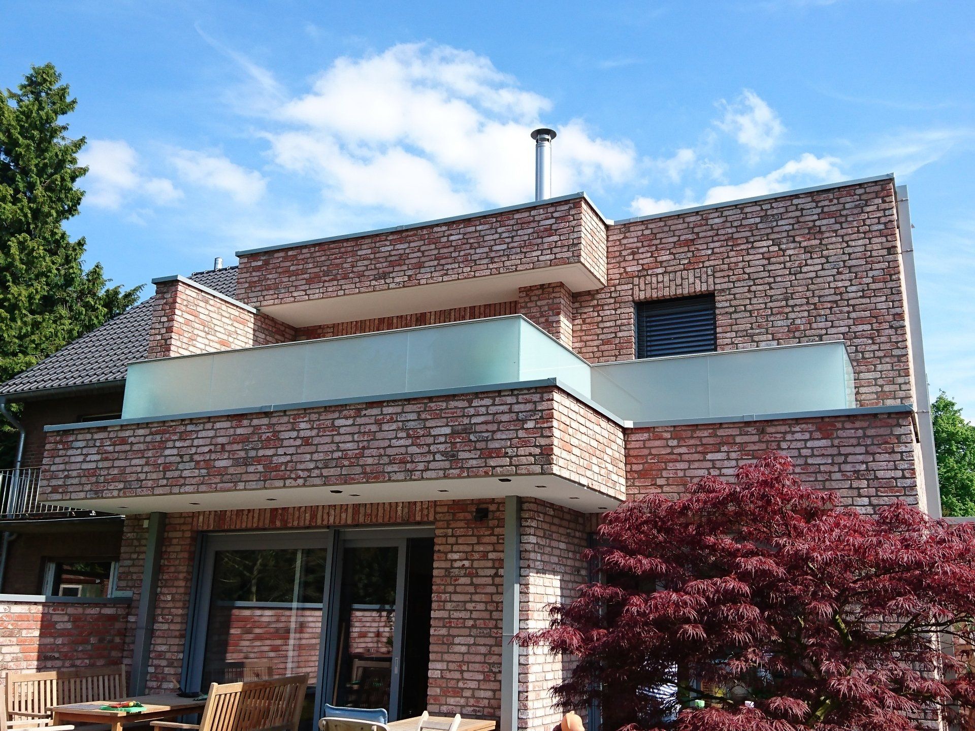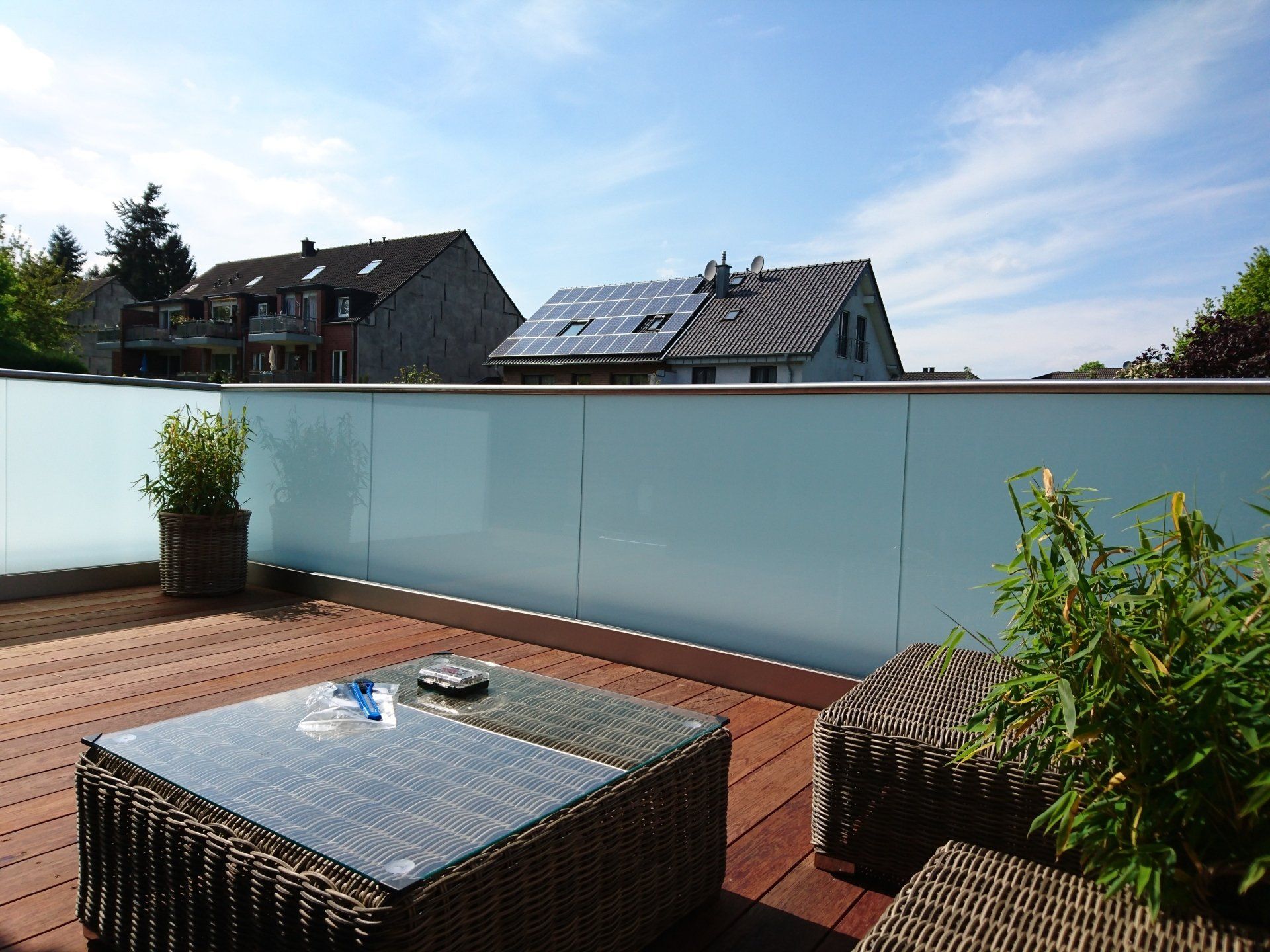 Balkongeländer mit satiniertem Glas (Milchglas)