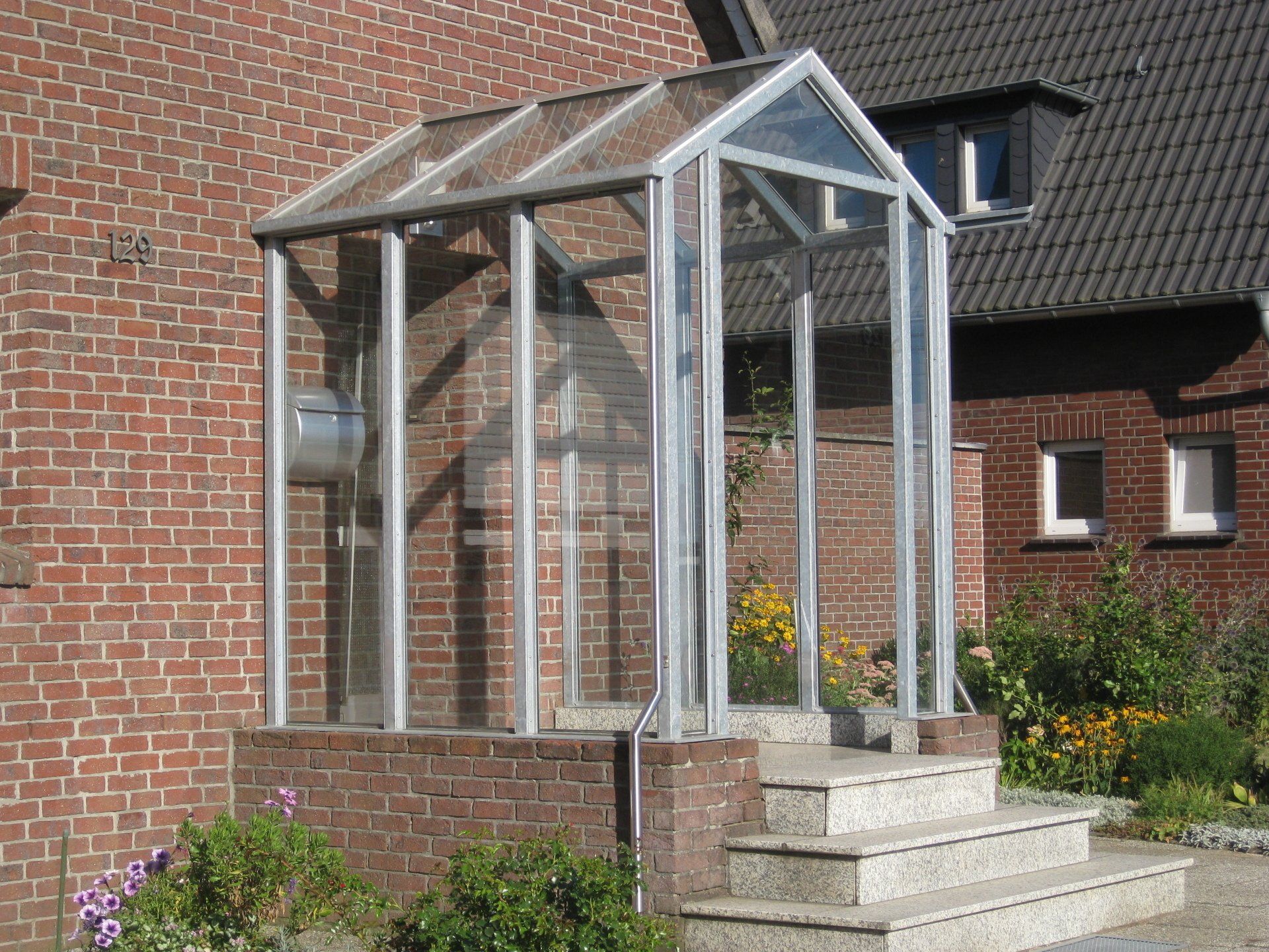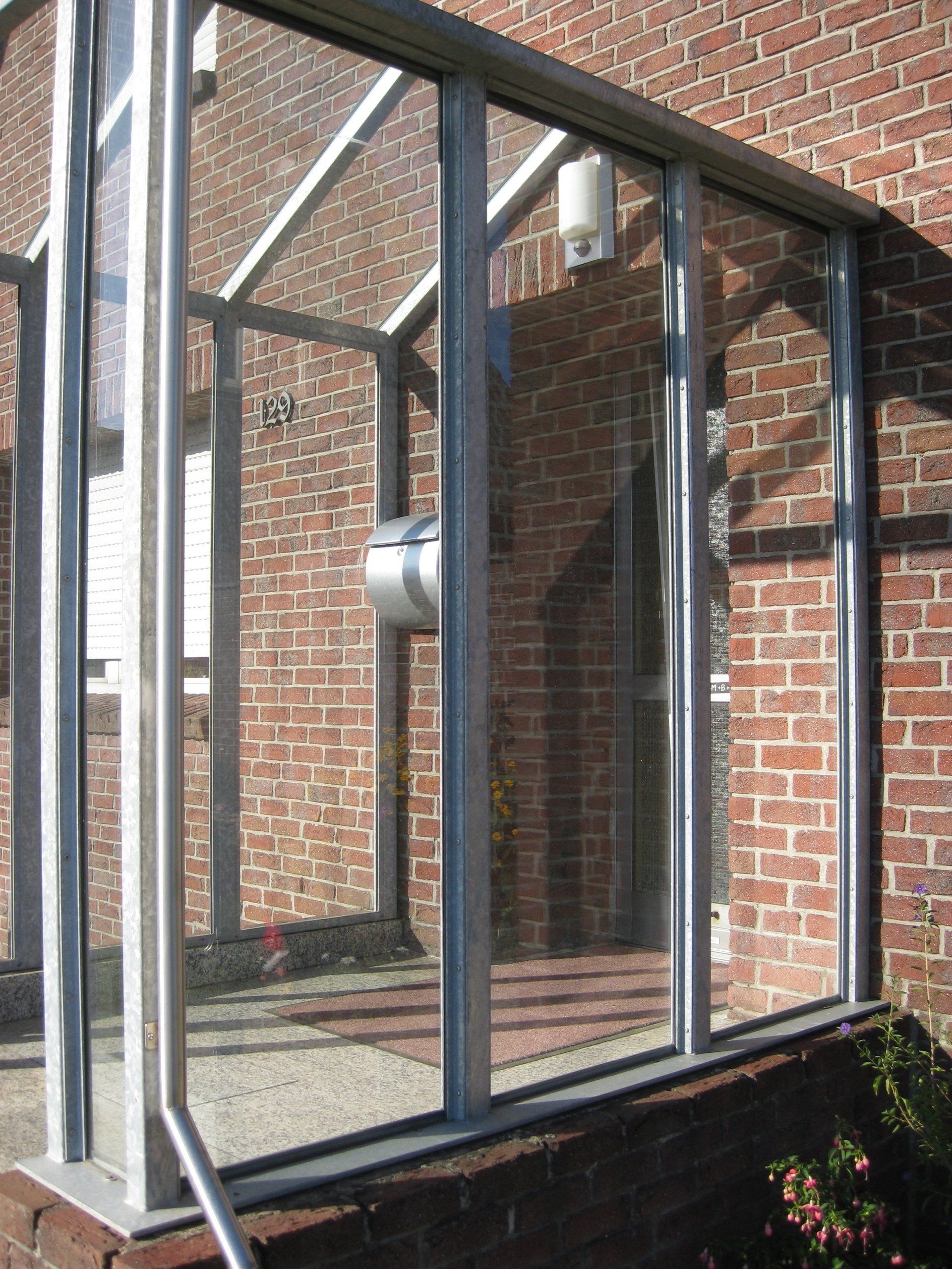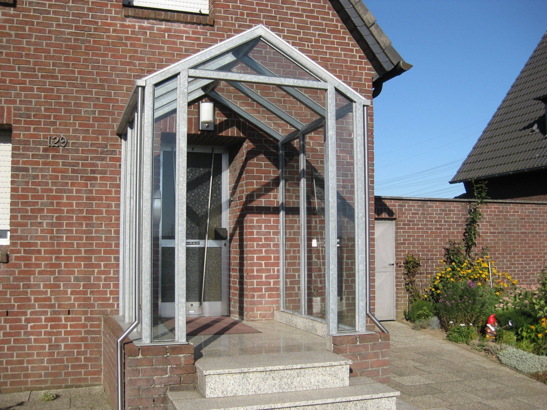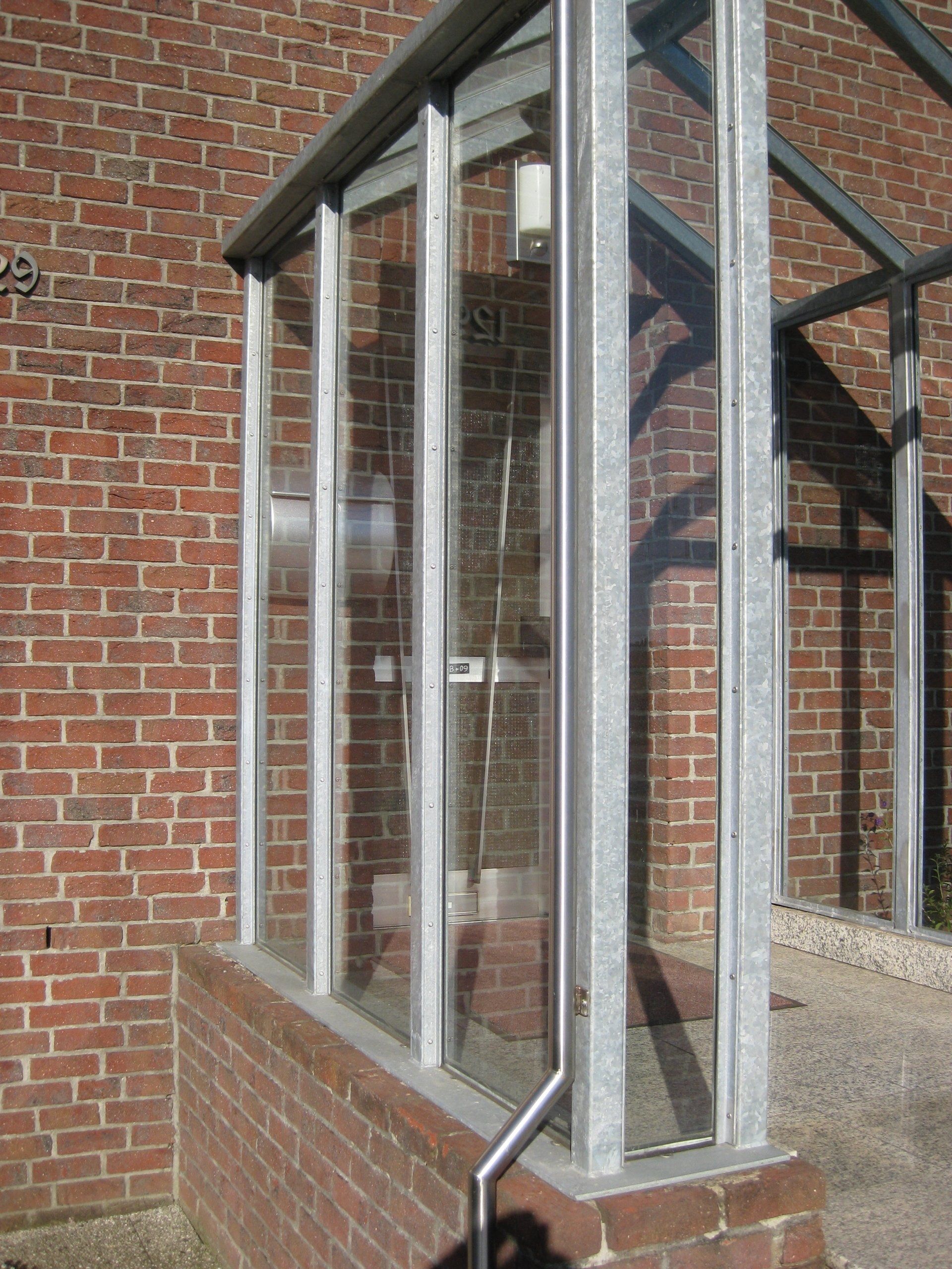 Verzinktes seitlich geschlossenes Vordach mit Glaseindeckung