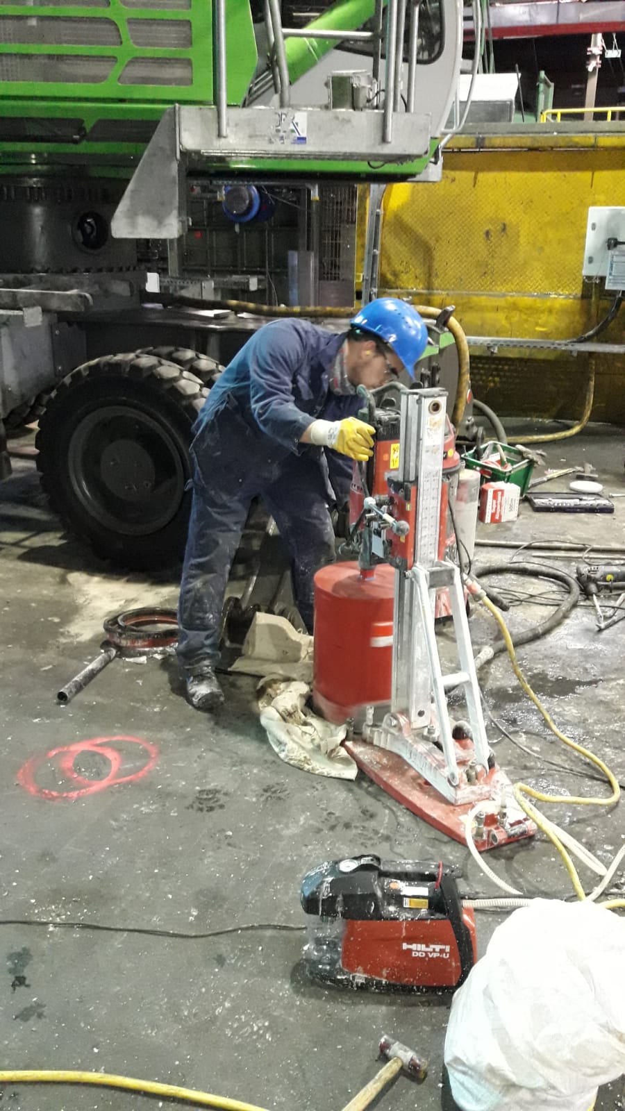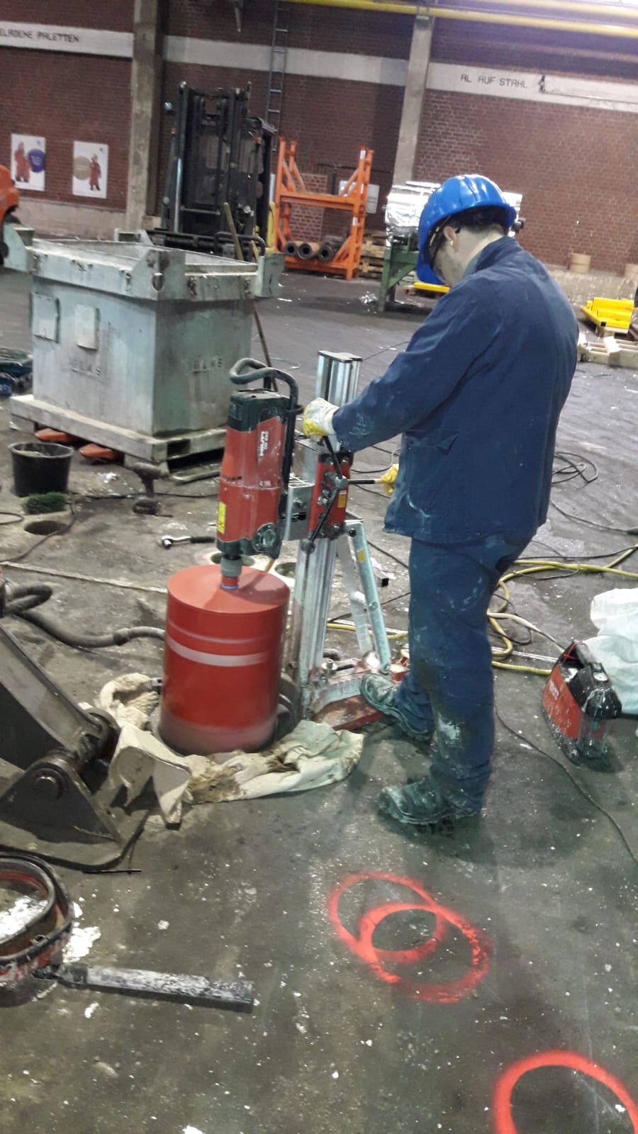 Insbesondere für die Montage unserer schweren Rammschutzgeländer ist eine besonders stabile Befestigung notwendig. Hierfür erstellen wir mit eigenem Kernbohrequipment Löcher zum eingießen der Entsprechenden Bauteile.